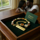 Bold yet refined. The AURA Collection combines gold and silver tones with vivid stones — a daring mix that speaks of confidence and clarity.
