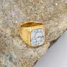 This ring stands out through its geometric silhouette and smooth intergold finish, combining modern craftsmanship with timeless symbolism.