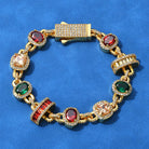Crafted from high-quality copper and finished in premium gold or silver plating, this unisex bracelet fuses modern geometric design with a bold rainbow of cubic zirconia stones. Designed to turn heads, built to last.