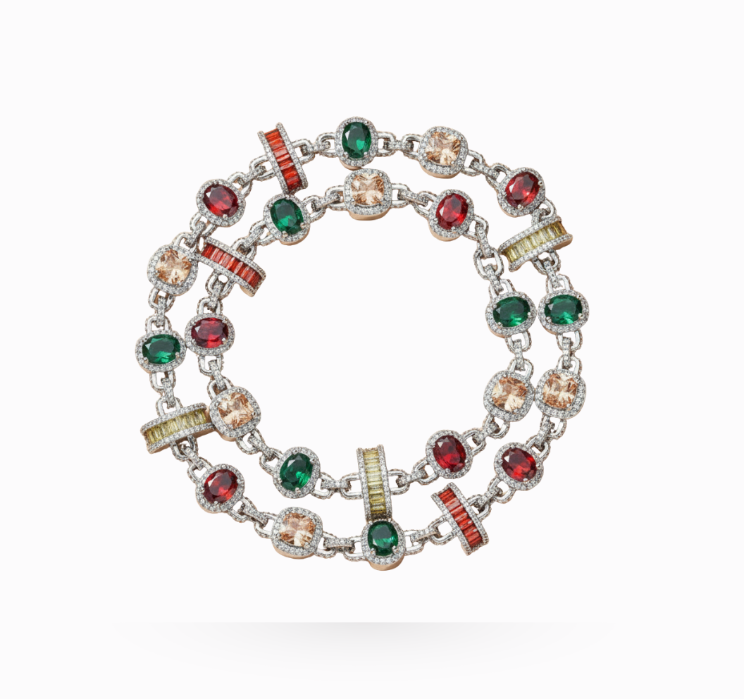 Bold yet refined. The AURA Collection combines gold and silver tones with vivid stones — a daring mix that speaks of confidence and clarity.