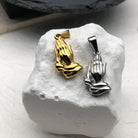 Available in 14K gold or polished silver, Les Mains de Foi is a timeless piece that blends Parisian minimalism with spiritual depth.