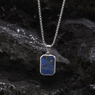 Crafted from high-quality stainless steel and set with deep indigo rectangular stones, this piece reflects confidence, clarity, and inner composure.